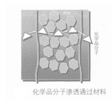 滲透是指化學(xué)物質(zhì)在防護(hù)服材料中溶解或化學(xué)物質(zhì)以分子運(yùn)動(dòng)的方式穿透防護(hù)服材料的過(guò)程。即分子首先吸附在界面上, 然后通過(guò)分子運(yùn)動(dòng)到達(dá)材料另一邊, 最后通過(guò)解吸透出。