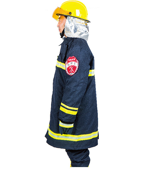●消防員滅火指揮服用于指揮員在滅火現(xiàn)場指揮消防員滅火戰(zhàn)斗時穿著的新式多功能防護(hù)服裝,服裝整體外觀形狀為風(fēng)衣式,在肩部、風(fēng)衣下擺、袖口等部位有反光標(biāo)志。反光帶阻燃、耐洗滌,使用進(jìn)口3M公司反光條。防護(hù)服面料分為外層、防水透氣層、隔熟層、舒適層。