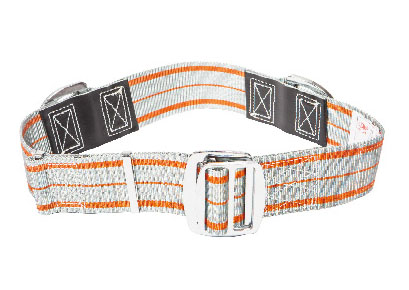 ·消防安全腰帶是一種緊扣于腰部的帶有必要金屬零件的織帶,用于承受人體重量以保護(hù)其安全,適用于消防員登梯作蚜口逃生自救。消防安全腰帶帶長連續(xù)可調(diào),由織帶、內(nèi)帶扣、外帶扣、環(huán)扣和兩個(gè)拉環(huán)等零部件構(gòu)成。消防安全腰帶的設(shè)計(jì)負(fù)荷為1.33N,其質(zhì)量不超過o.85kg??棊橐徽?,無接縫,其寬度為{70±1)mm。具有靜負(fù)荷性能、抗沖擊性能、耐高溫性能以及金屬零件的耐腐蝕性能。