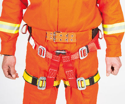 ·設計負荷為1.33kN,固定于腰部、大腿或臀部以下部位,適用于單人緊急逃生。I型消防安全吊帶由腰部織帶、腿帶、腰帶帶扣和織帶拉環(huán)等零件構成,為坐式安全吊帶。